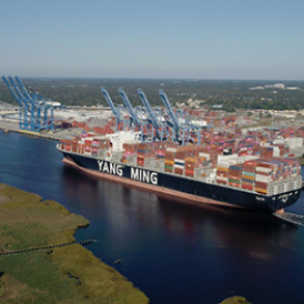 The Yang Ming Unity, measuring 1,101 feet in length and 140 feet in width, was the largest vessel to utilize the expanded turning basin and call the Port of Wilmington. The Yang Ming Unity called the Port of Wilmington on August 7, 2016.