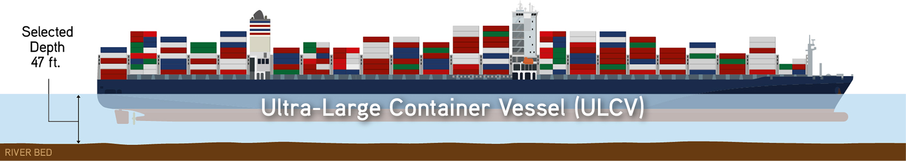 - Allows larger, deep-draft container vessels in U.S. East Coast-Asia trade to access the Port.